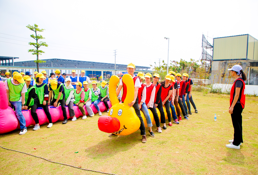 第二個游戲,毛毛蟲賽跑。一隊成員分3小隊,每次5人一起騎毛毛蟲,三前兩倒著走,三組來回接力,最先完成的隊伍則獲勝。比賽開始,有蹦著跳的袋鼠蟲,也有標準蠕動的毛毛蟲,有些真不是毛毛蟲,他們太快了,快的飛起來了;還有一些在享受著原地跳起了探戈,左搖右擺前前后后,讓我們一起搖擺;游戲歡快的進行著,腿長的優勢就很明顯了,研發的小伙伴們腿都長,最后由腿更長的十面埋伏隊獲得勝利。